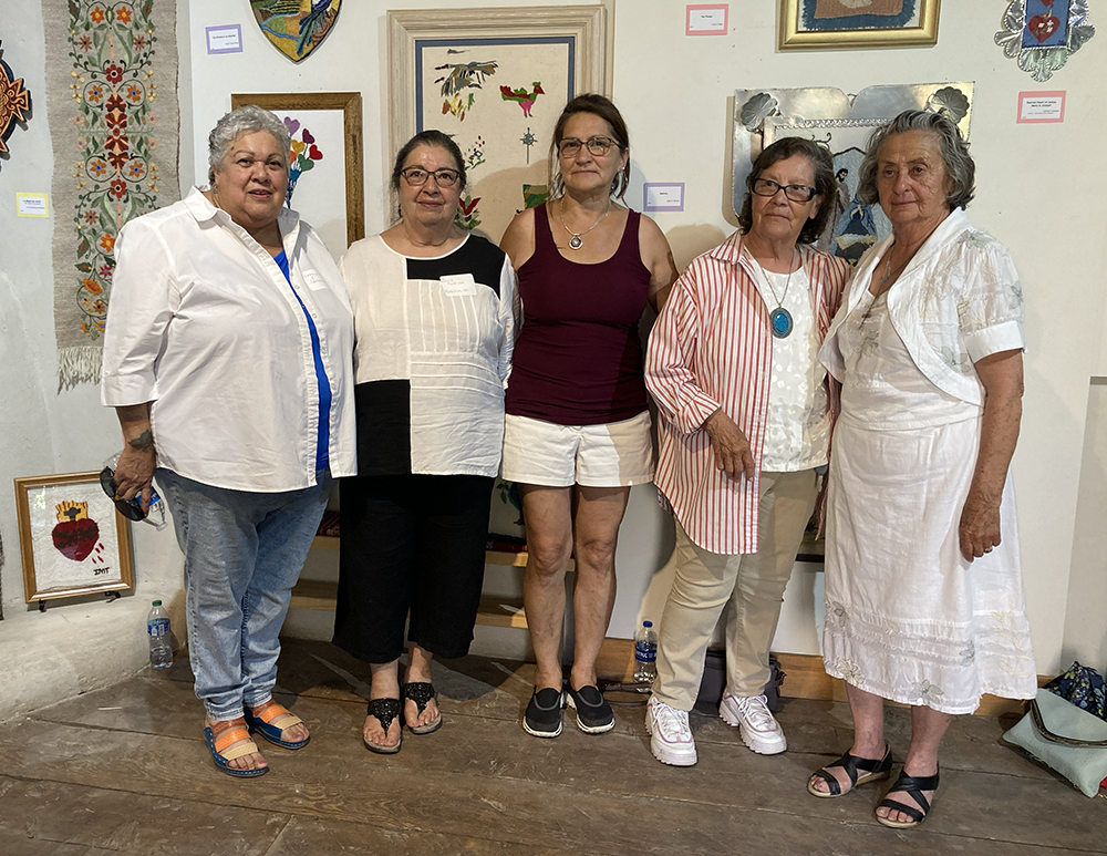 Maria Eufemia Barela, Sandy Dolak, Adrienne Garbini, Patsy Garcia, Peggy Garcia Williams, Donna Madrid Hernandez, Aurora Martinez, Julia Mondragon, Marcella Pacheco, Marcella Quintana, and Mary Vigil de Rodriquez included in an exhibition of New Mexico and Southern Colorado colcha embroidery.